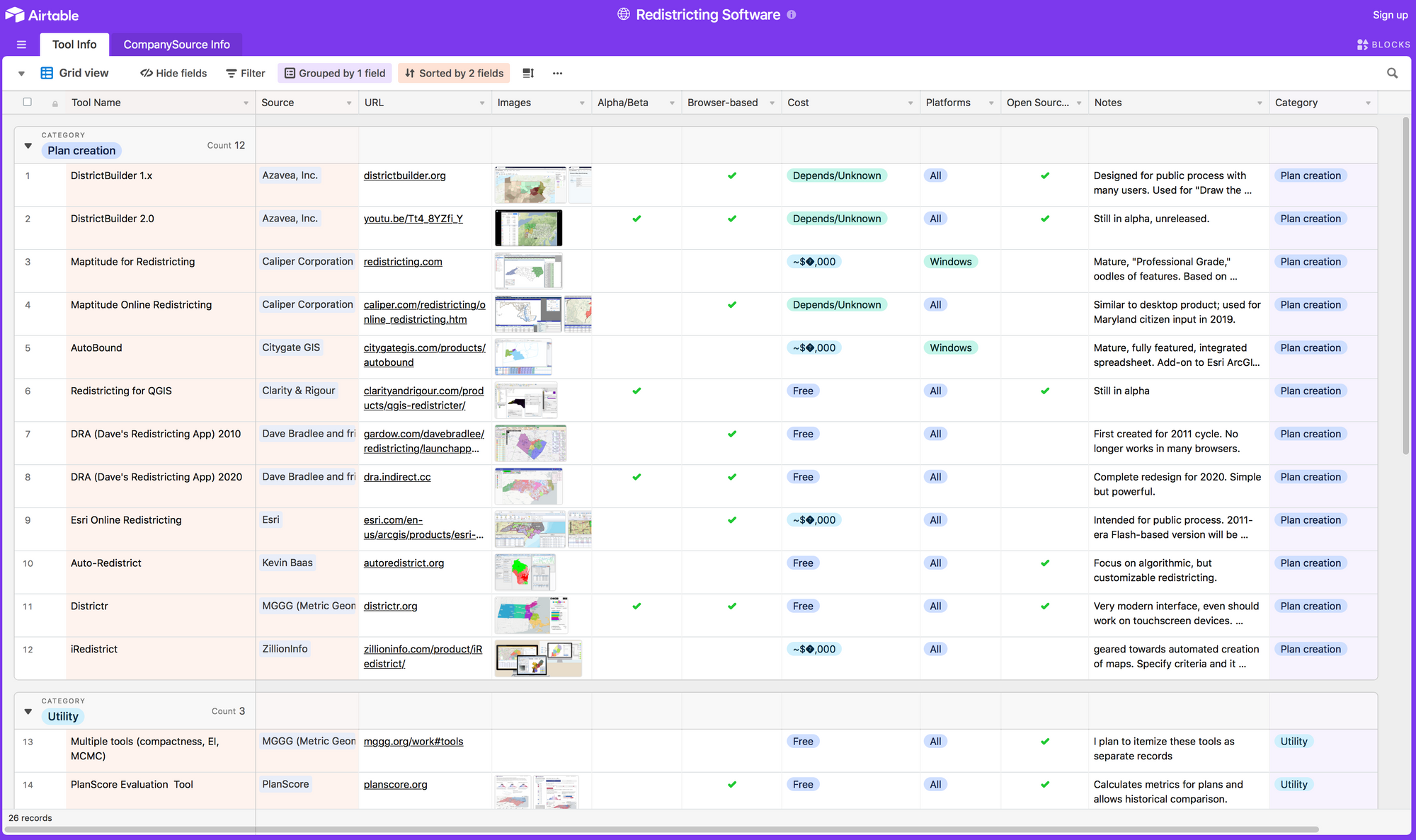 I'd also been meaning to try out Airtable, and this exercise happily gave me a chance to do that. So far, it seems to be a good tool for this purpose. =)