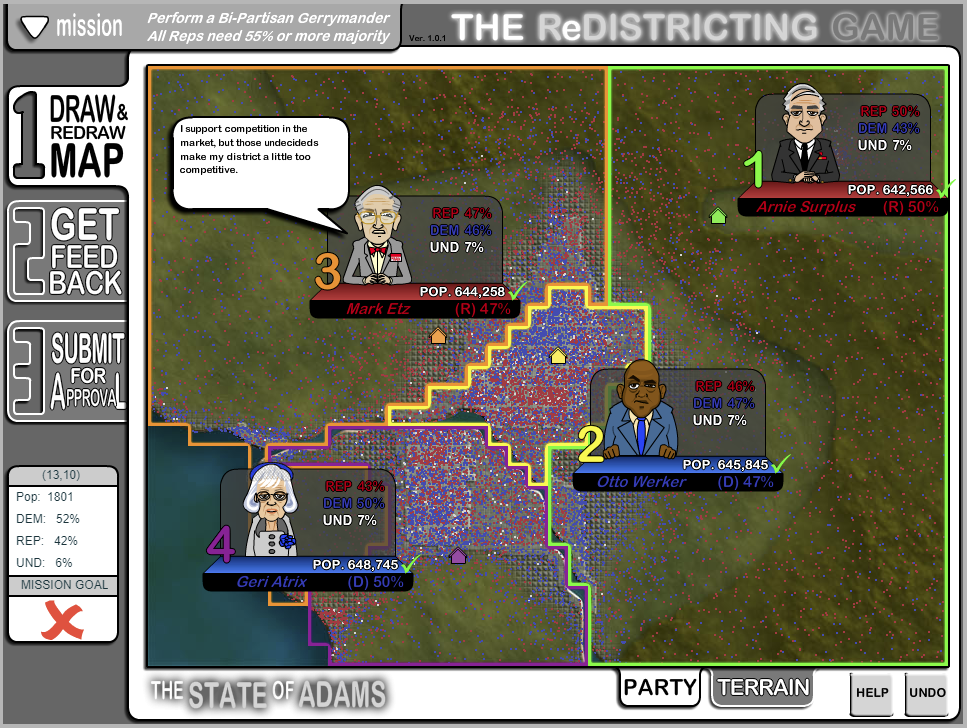 I realize that taking my opinion about whether a redistricting game is fun is kinda like consulting Neil deGrasse Tyson to determine if astronomy is cool. But I've heard from plenty of people in recent years who are less nerdly about redistricting than I am who say that they fully enjoyed playing.